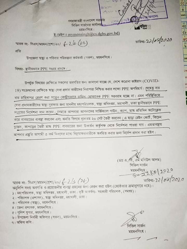 বিপরীত চিত্র দেশের হাসপাতাল গুলো বারবার চাহিদা পত্র প্রেরণ করা সত্ত্বেও সংশ্লিষ্ট বিভাগ থেকে কোন প্রকার বরাদ্দ পাচ্ছেনা। তারপরও মন্ত্রী বলছেন আমাদের পিপিই লাগবে না।